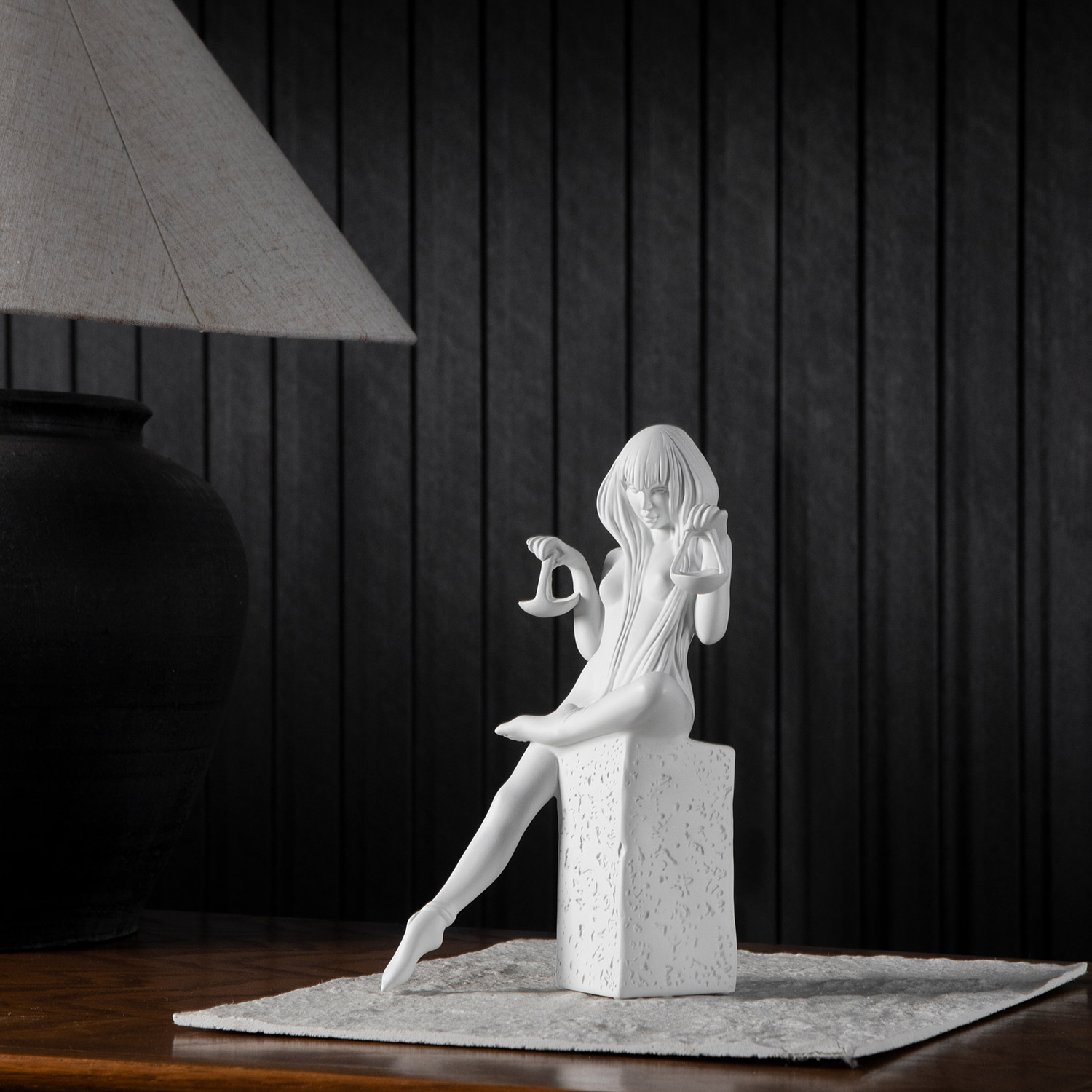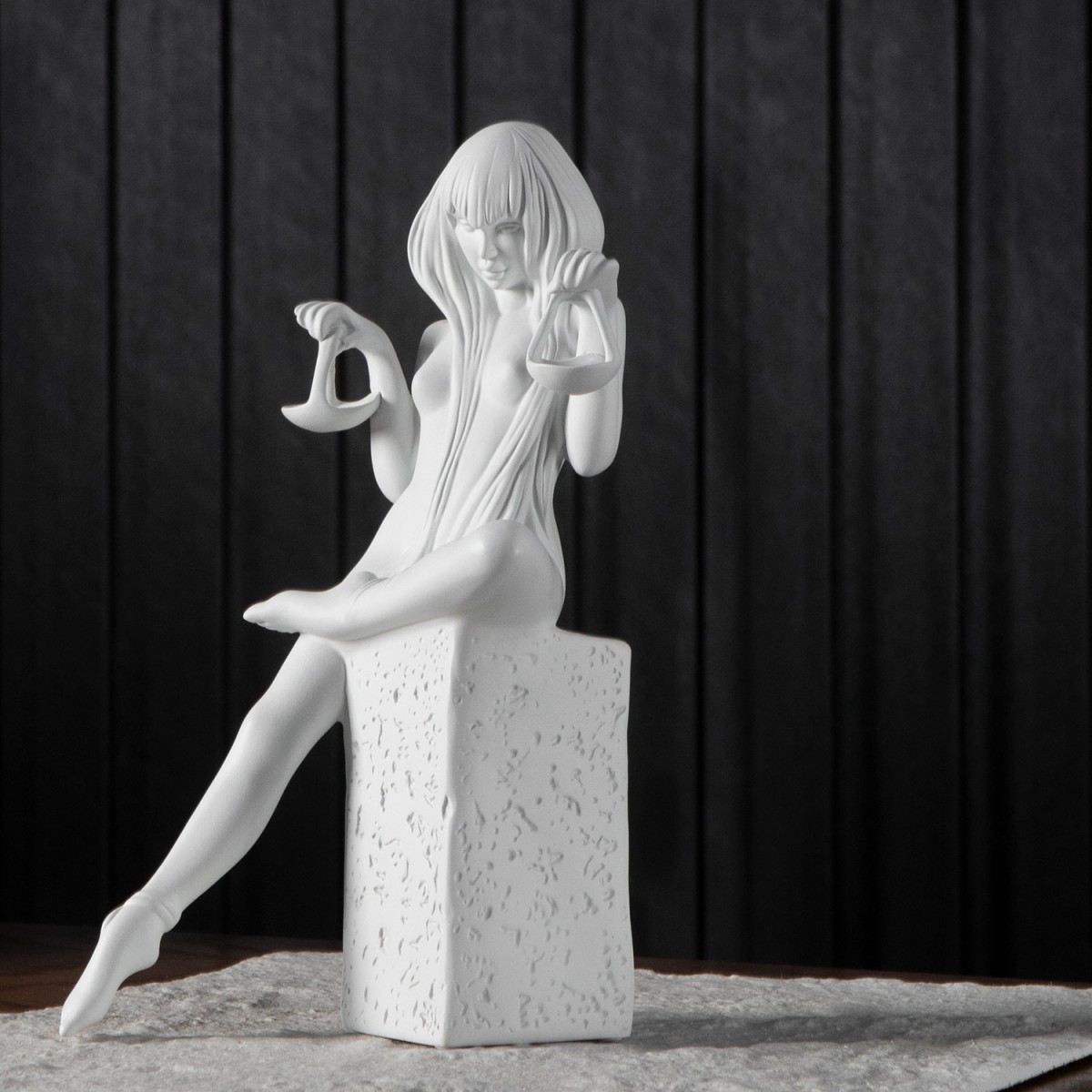 The mystery in her gaze delves into the essence of Libra, while her proud stance accentuates the beauty of the figure. This makes her a unique design in any home.